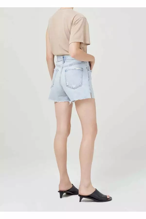 With an ultra-high neat fitting rise. The Dee fits close to the body. This vintage inspired short is accentuated with a side slit detail.