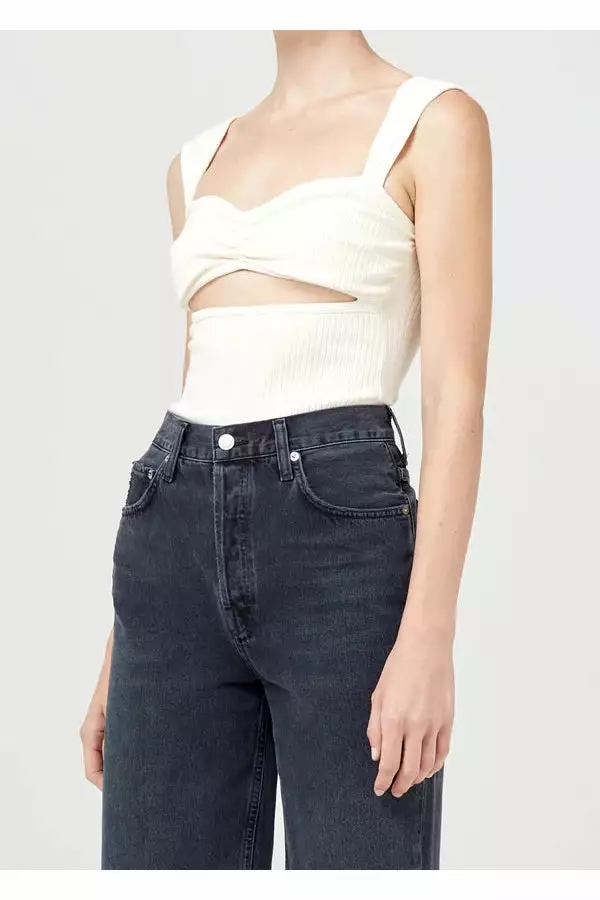 Sweet meets striking with our new Isla tank. Feminine rouching pairs with a sleek cut out detail.