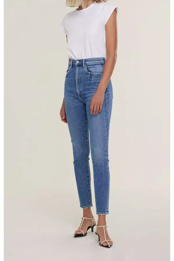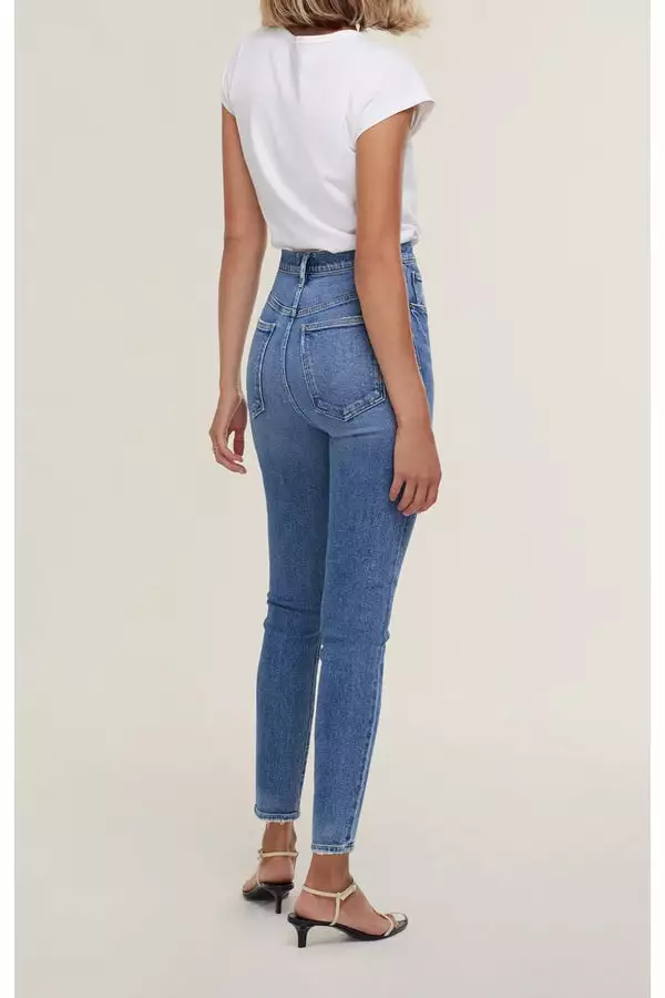 Aptly named, this 80s-inspired silhouette is designed to flatter your frame with a neatly cinched waistband. The crowd favorite features a higher-than-high rise and skinny fit from top to bottom.