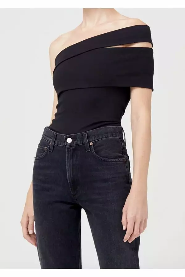 Simple yet striking, this shoulder baring bodysuit is crafted from our new bodycon fabric to create a form-flattering fit. Tuck yours into denim to complete the look.