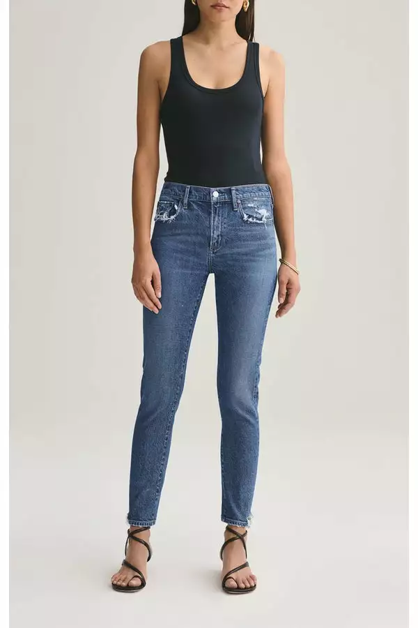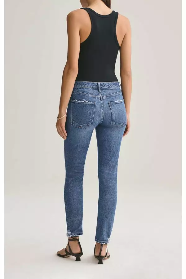 Mid Rise Straight Leg | Front Rise: 9 3/4″ | Inseam: 27″ | Leg Opening: 12 1/4″