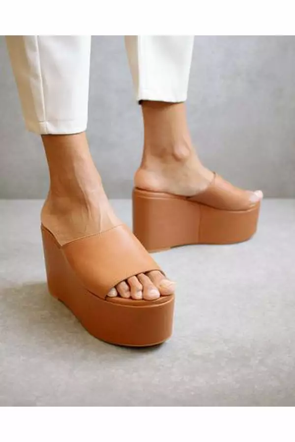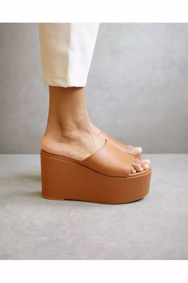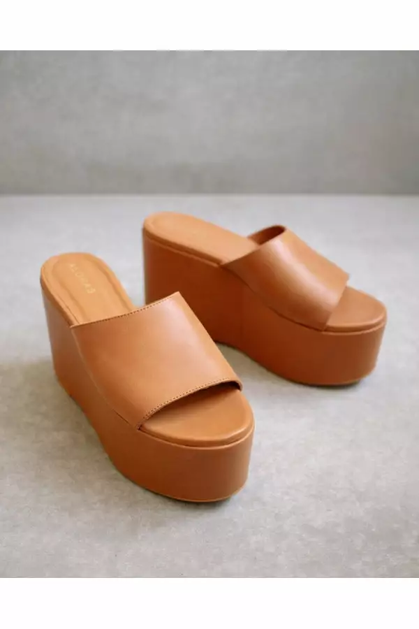 We’ve fallen head over heels for these new brown leather platform sandals. Open toed, extra chunky, maxi platform sandal featuring all leather.