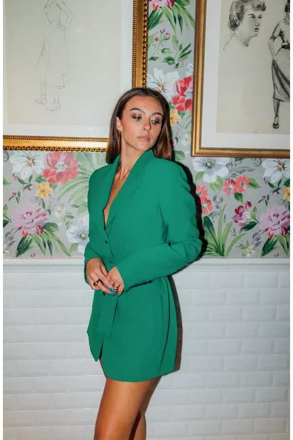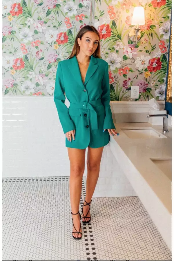When work meets play, you get the Meritt Blazer. The ultra chic blazer can be work as a top or dress and features black hardware and an adjustable belt to cinch in your waist. Add some high heels for a sleek dinner look. Â