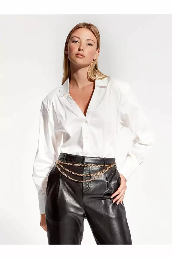 When it comes to closet staples, few are more essential than a crisp white shirt. Our Cheyenne Crisp Blouse is made from smooth stretch cotton and cut to a relaxed fit that falls nicely over your figure. The removable shoulder pads and flattering V-neck keep this style fresh & modern.