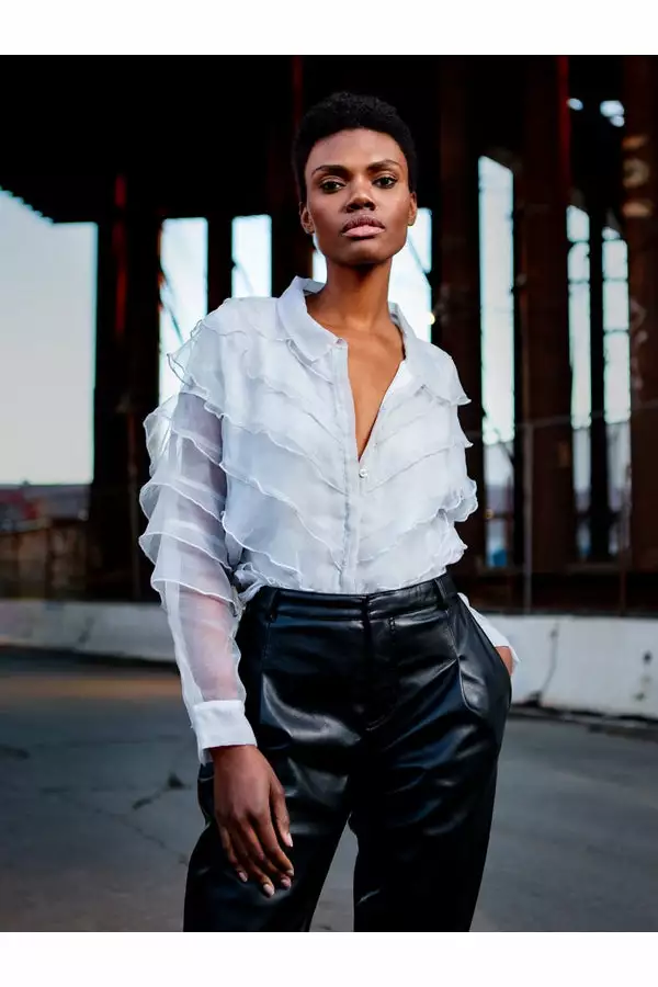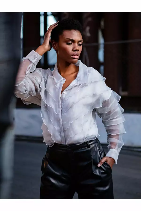 Embody romantic charm with our Nico Blouse. Made from beautiful translucent organza, Nico features tiers of ruffles along the bodice and sleeves – resulting in a sheer, sensual piece. Features an opaque lining and a button-up front for easy styling.