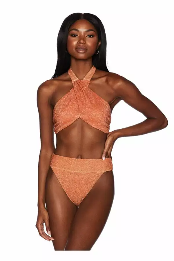 The Cecilia Botom has a similar cut to our best-selling Alexis Bottom. Now in sparkling Oriole Shine fabric. Pair with the Jessica Top or Suki Skirt in Oriole Shine.