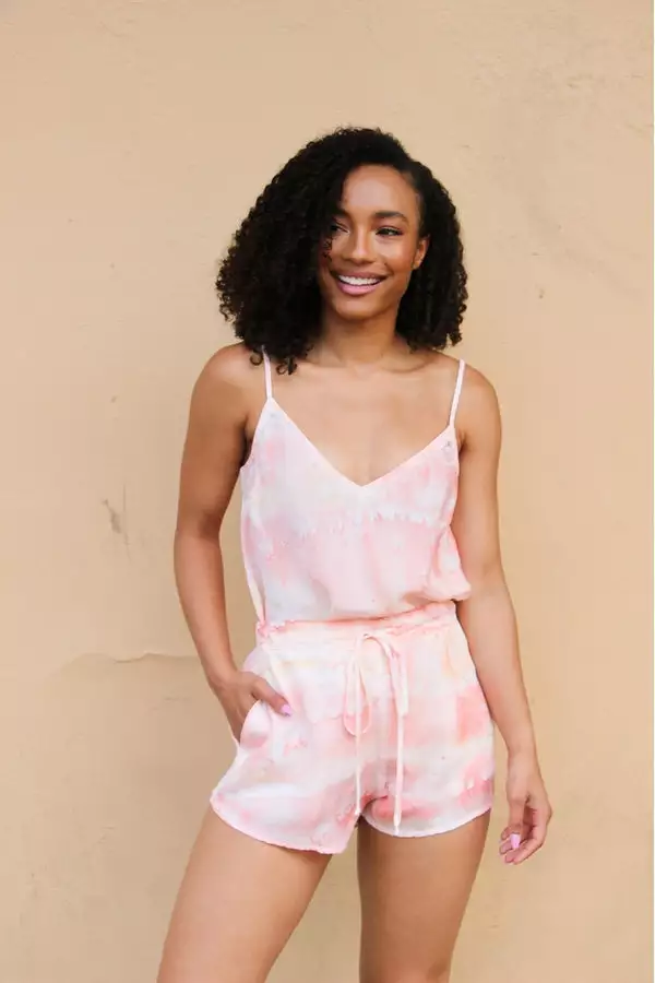 Tie dye sunset skies. The Bias Cami is a sweet little tank finished with a v-neckline.Â