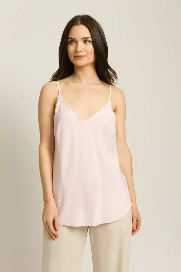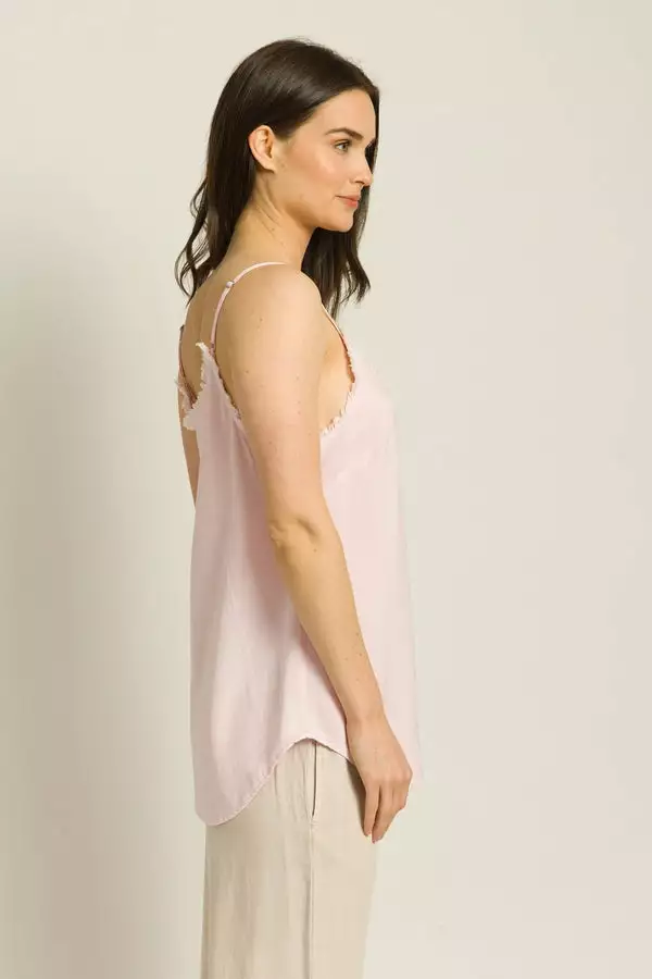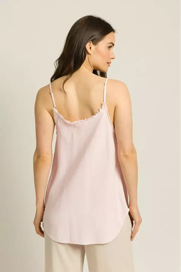 This Frayed Cami is an easy essential or building block to your wardrobe. Designed with a drapey fit, v-neck and frayed hem.