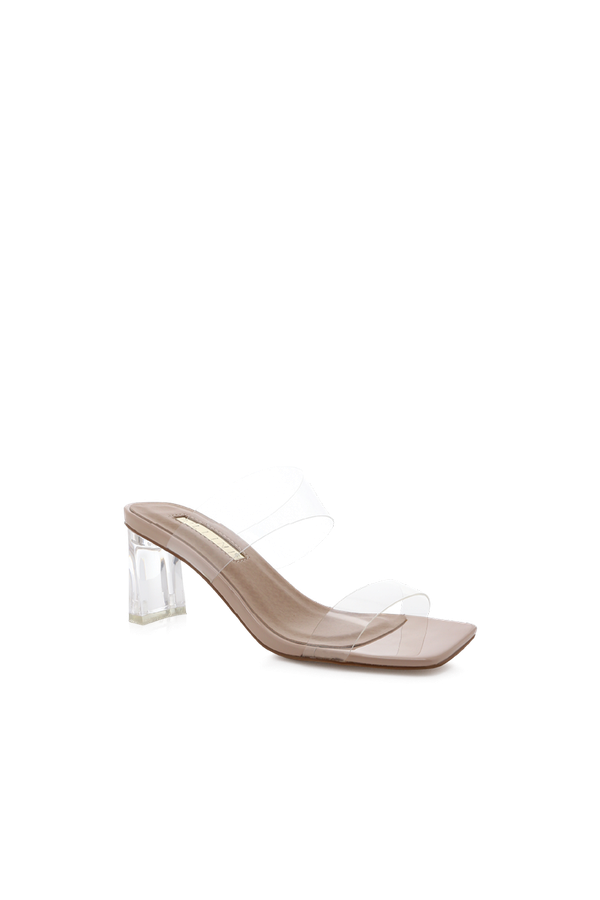Turn up the glam in this ultra-chic heel, featuring soft clear vinyl straps finished with a clear perspex heel.