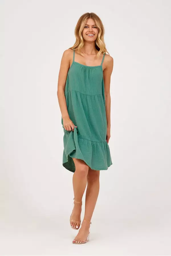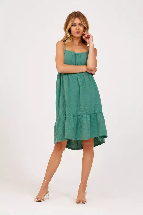 This adorable dress has adjustable spaghetti straps, a 3-tier design, and it made out of our lightweight, textured gauze fabric. Add this easy-breezy dress to your closet – you will love it how effortless it is!