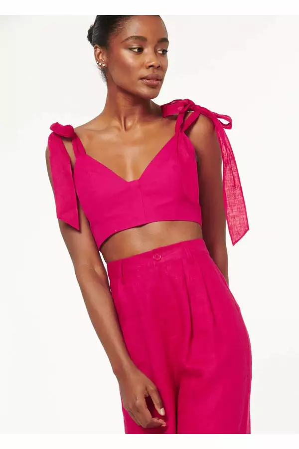ConstructedĀ from a gorgeous and soft linen-cotton blend, theĀ LivyĀ CropĀ Cami is aĀ versatile and effortless fit. This perfectly feminineĀ croppedĀ top features functional straps which fold into romantic bows at the shoulders.Ā TheĀ Livy Crop is a fabric-mixing silhouetteĀ featuring a canvas bodice to gently contrast with theĀ linen bow straps.Ā The Layla is finished with a separating metal zipper at the center back. Pairs perfectly with the Rylie Pant, also by Cami Nyc.