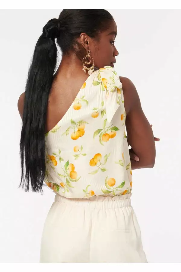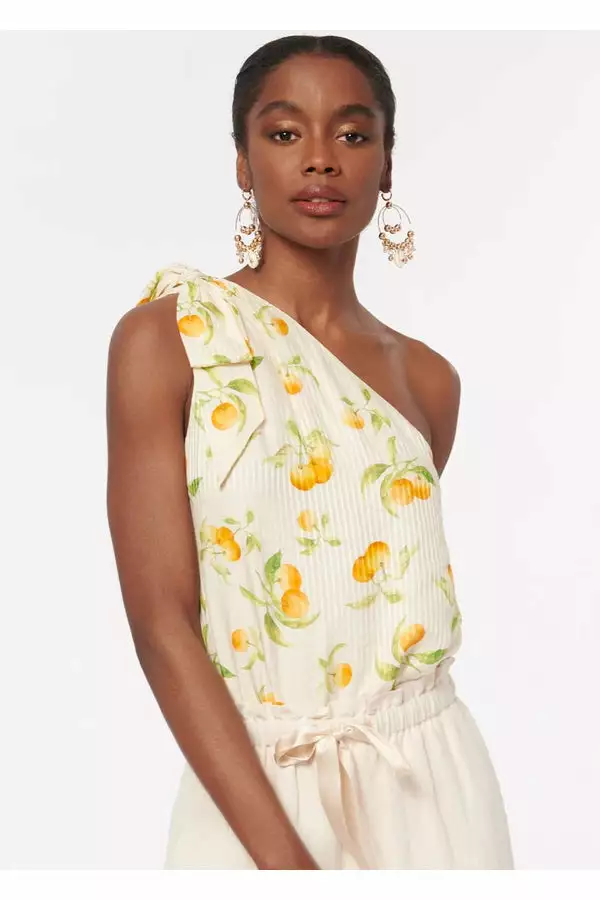 Elevate your daily look with our new Cala Top. Crafted from a soft and light cotton linen, the Cala is a classic off-the-shoulder long-sleeve blouse featuring a large, double ruffle detail at the top edge with added organza for maintained volume. The Cala features a lined bodice and is finished with elasticated sleeve openings and a tunneled elastic bottom hem with blouson. Now available in Orange Orchard, a graphic and fun fruit print with pops of orange accented with lime and an off-white ceramic hue. Day to night, night in or out, the Cala has you covered.