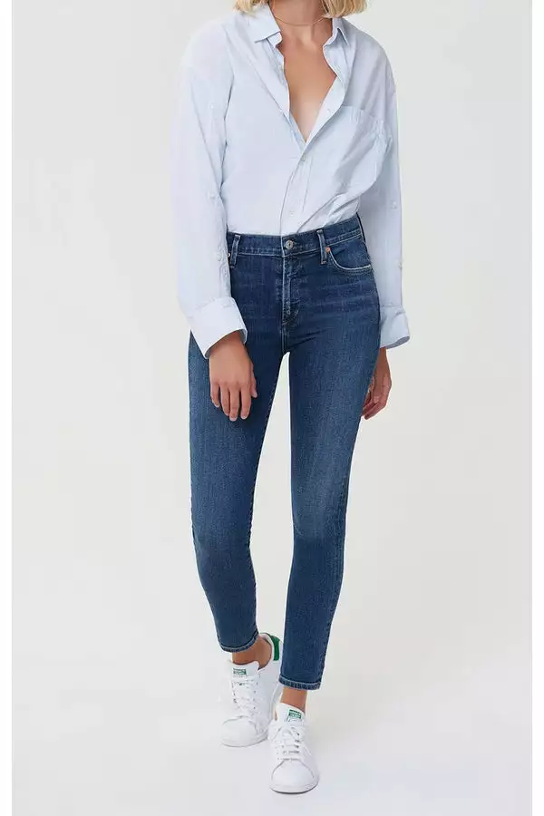 Our signature skinny. This cropped mid-rise silhouette is crafted from stretch denim to provide a figure-flattering fit with lasting shape.