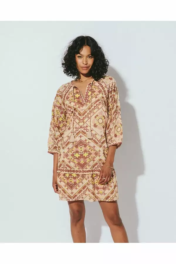 Made of 100% GOTS certified organic cotton, the Amber Mini Dress in Geo Print is feminine, flirty and the perfect dress to take you from morning to night. Dress down with a pair of white sneakers or pair with a strappy heel and a nude handbag for date night!
