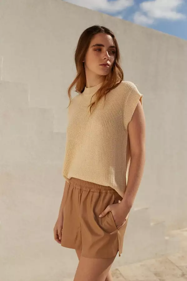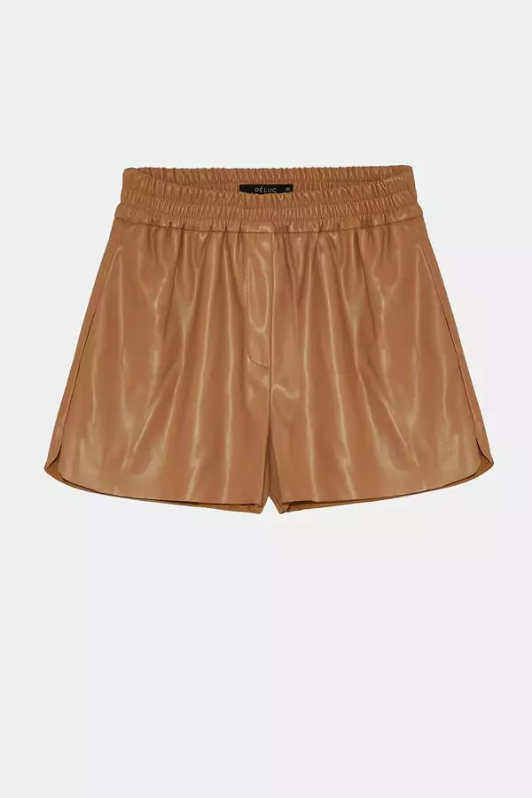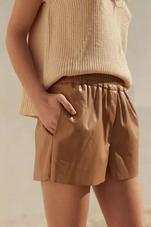 Vegan leather short with elastic waistband and 2 pockets. Fabric Composition:Â 100% Vegan Leather.
