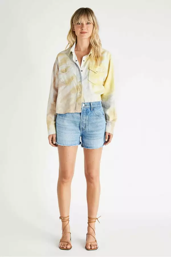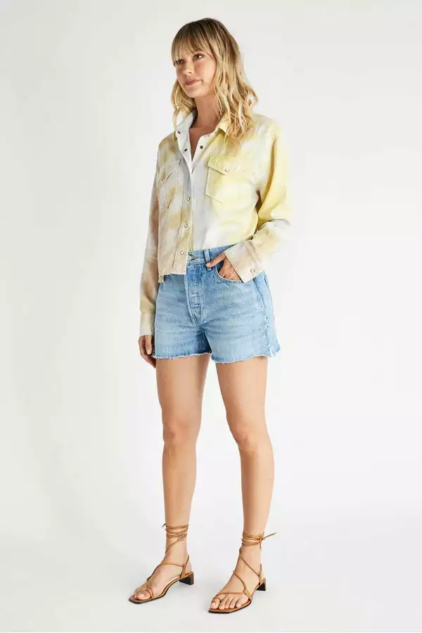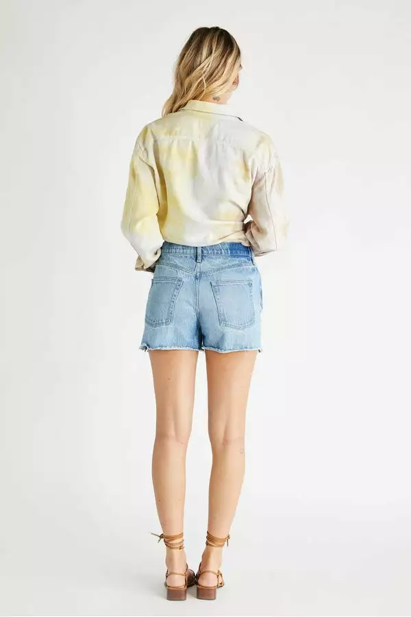 The Sydney is a high rise short with a button fly and raw hem. This sustainable cotton/tencel blend denim has a soft hand with substantial vintage texture.