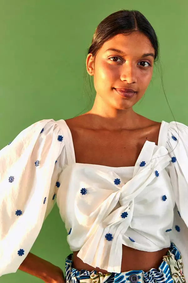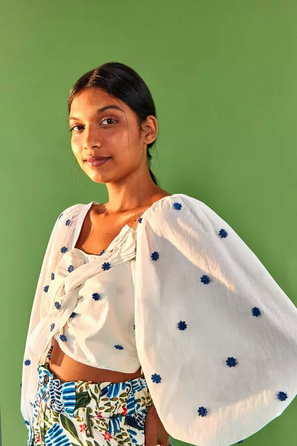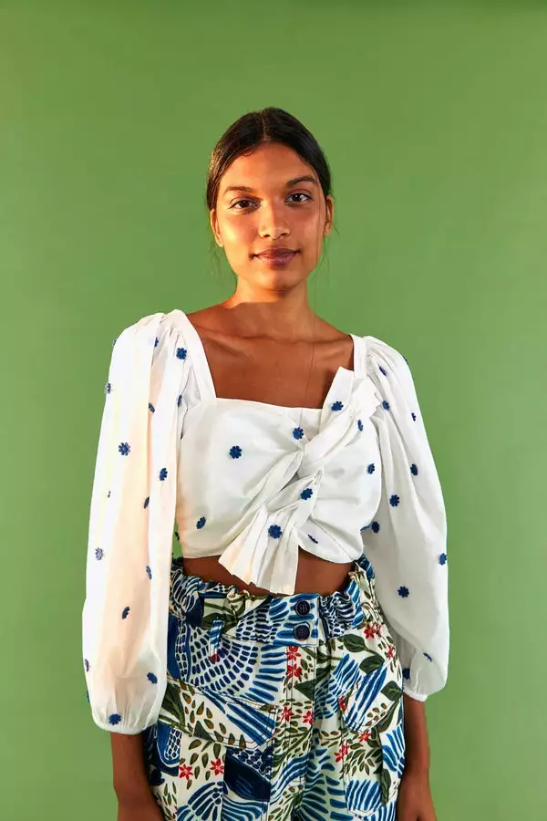 Now you’re on top of your happy season: the Blue Flowers Long Sleeve Crop Top has a well-deserved easy fit to give you the comfort you’re seeking for. Its 3D flower appliques will inspire your cheerful moments and match all your classic bottoms. And, of course, bold accessories are great plus-ones as well!