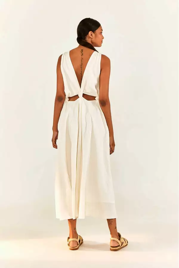 A solid statement of what making a bold impression means to you. The White Cut Out Midi Dress is here in the most fancy-yet-cool silhouette you can find out there! It also features a plunging neckline and cut-out detailing to level up whatever sunny plans you have in mind.Â