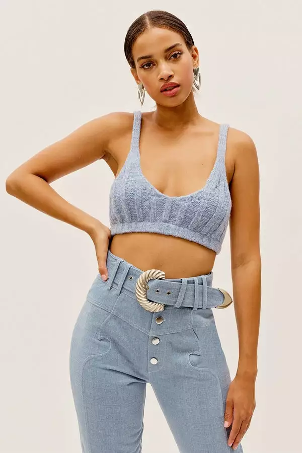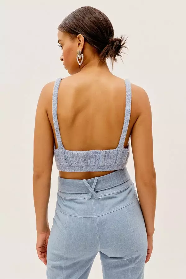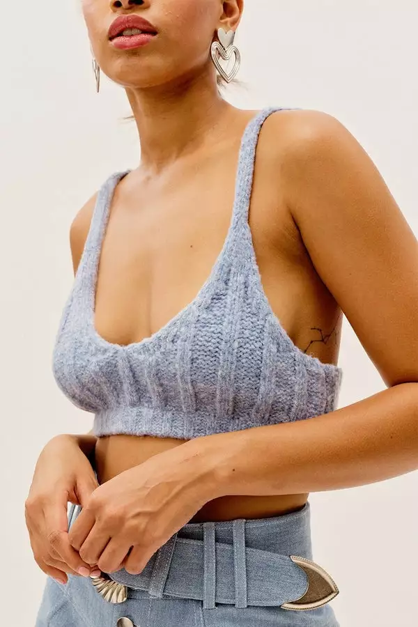 Effortless ribbed knit bra top featuring a triangle bust. Pair with the Lee Cardigan for complete coziness.