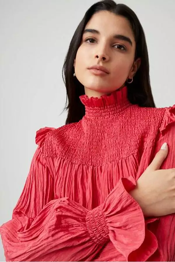 Channel the ever-essential prairie girl look with the Boza Crinkle Smocked Top. In a crisp, crinkle-effect fabric, itβs decorated with ruffled accents and a smocked panel.