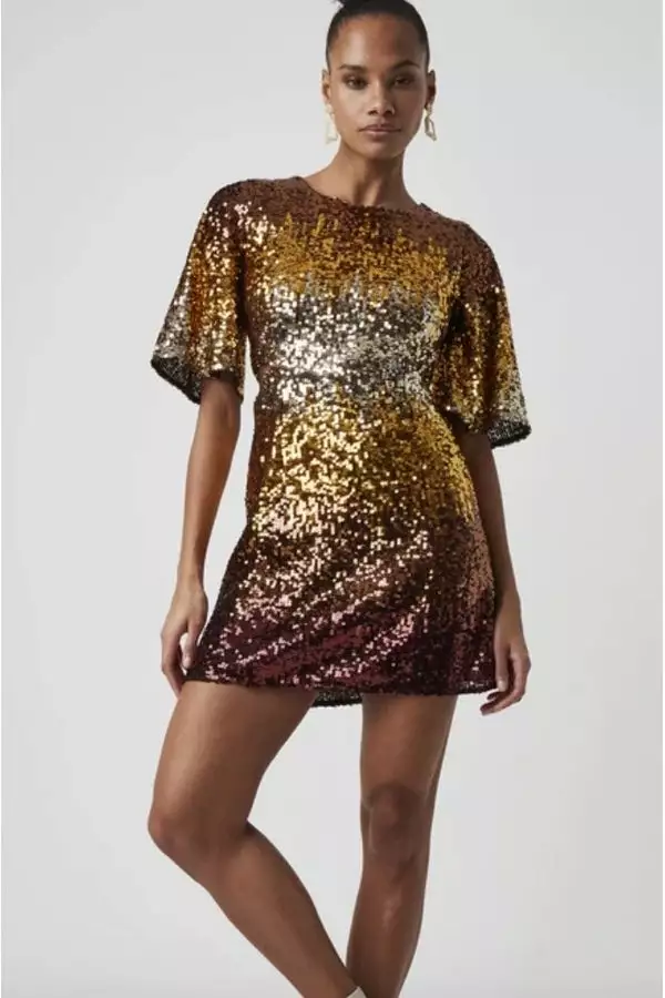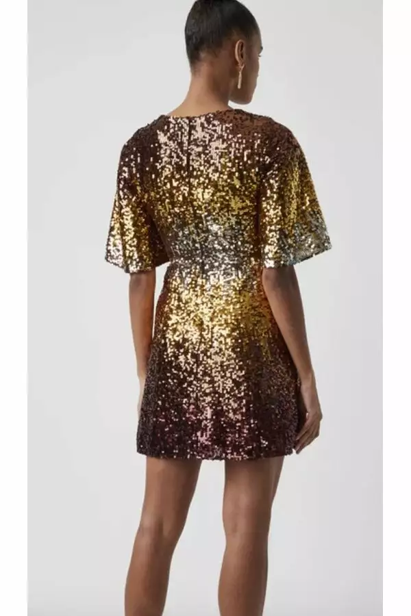 Sequins are always a good idea – and the Estari Sequin Cut-Out Mini Dress is perfect for the party season. Designed with cut-outs and short sleeves.