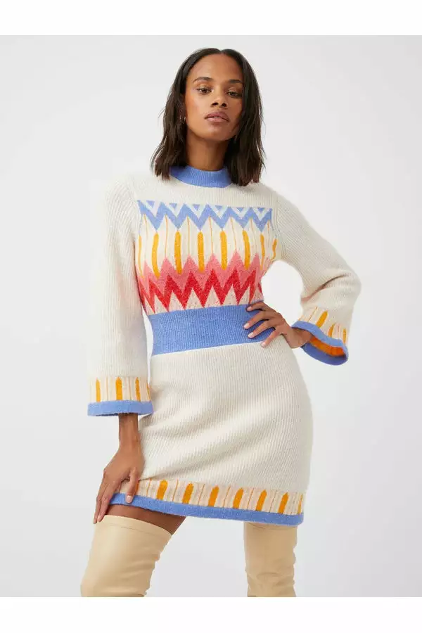The Neya Fair Isle Knit Mini Dress is imbued with true British charm. Crafted from a soft-touch wool-alpaca blend, it’s decorated with a colourful Fair Isle print.