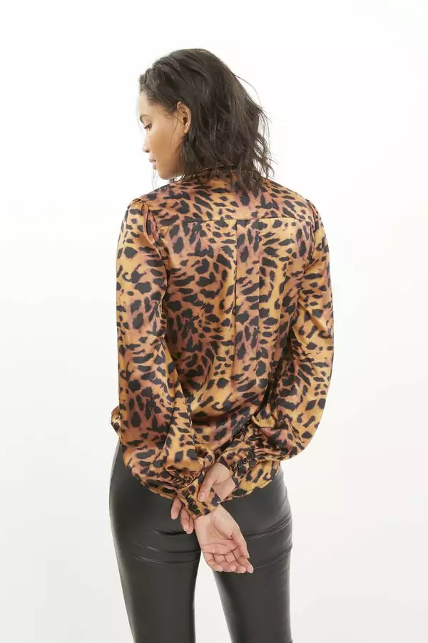 A fresh take on classic shirting, the Aurelie blouse is a luxe must-have this season. This new wardrobe basic features a breezy, loose cut and balloon sleeves. Its clean hidden button placket add to its sleek and sophisticated look. Tucks effortlessly into any of our vegan leather bottoms.