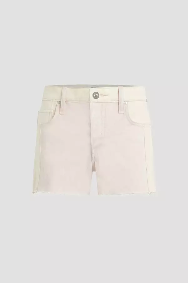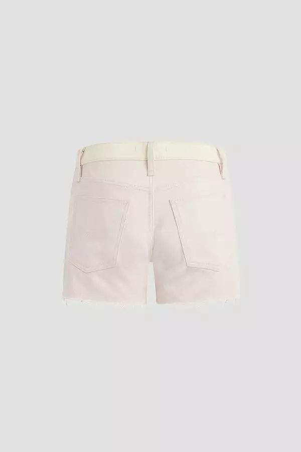 Made from expertly washed 100% cotton, our Lori High-Rise Short in Egret and Light Pink is cut loose for a roomier fit. Features a cutoff hem and classic five-pocket details.