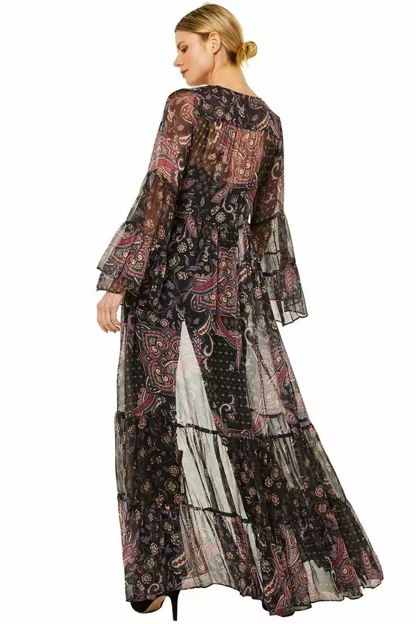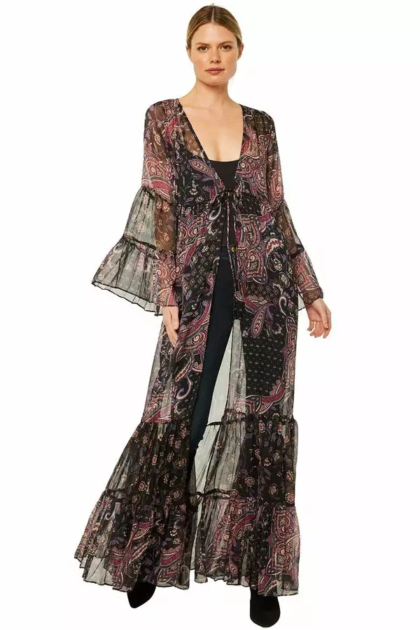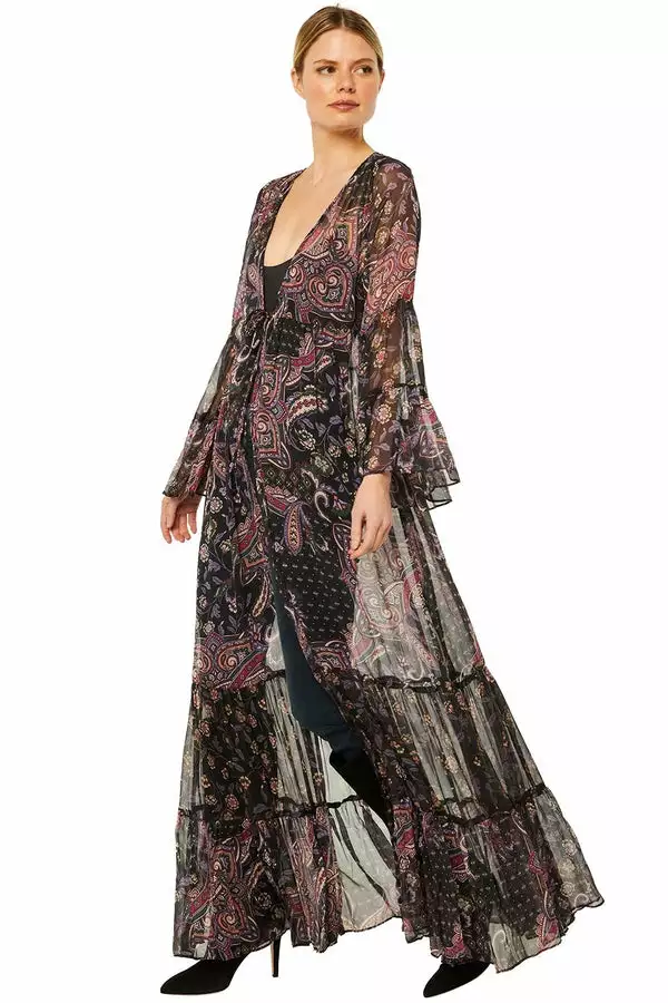 The semi-sheer Alessandra robe is a striking yet highly-wearable design handcrafted from our delicate chiffon. It features a tonal paisley motif, bold sleeves and a self-tie string closure. Pair over jeans and a tank or a simple black dress, this is the perfect third piece to elevate your casual look.