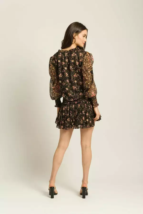One of our signature silhouettes is back in a chiffon medallion print. This effortless piece is crafted from layers of romantic ruffles and features an elastic waistband that comfortably sits on the waist. A slightly curved hem and longer back accentuates the flattering silhouette that can be paired with everything from a plain tee or comfortable sweater to our coordinating Siena top.
