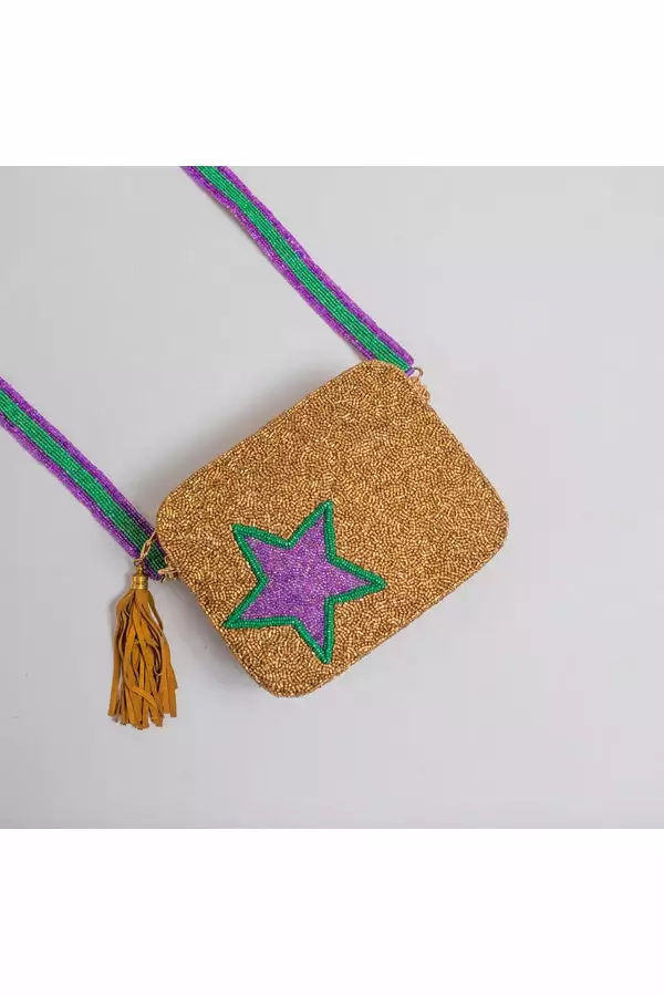 Be the first to review “Moyna New Gold Beaded Crossbody Bag With Purple Star” Cancel reply