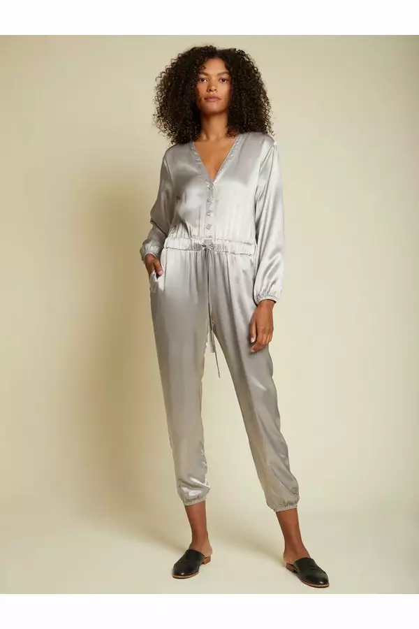 Meet the perfect jumpsuit in luxe Hammered Satin. This one-and-done essential has a drawstring at the waist so you can define your shape and find the right fit. Elastic at wrist and ankles for you to jooze accordingly. A real contender for the IRL holiday.