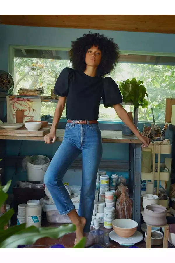 An unexpected Pima Cotton Poplin bubble sleeve adds a bit of drama to this mock neck tee.