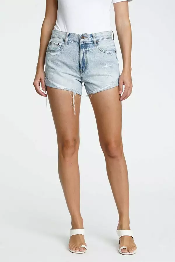 This warm-weather staple comes cuffed and features light distressing throughout and comes in a crisp light wash with vintage marbling.