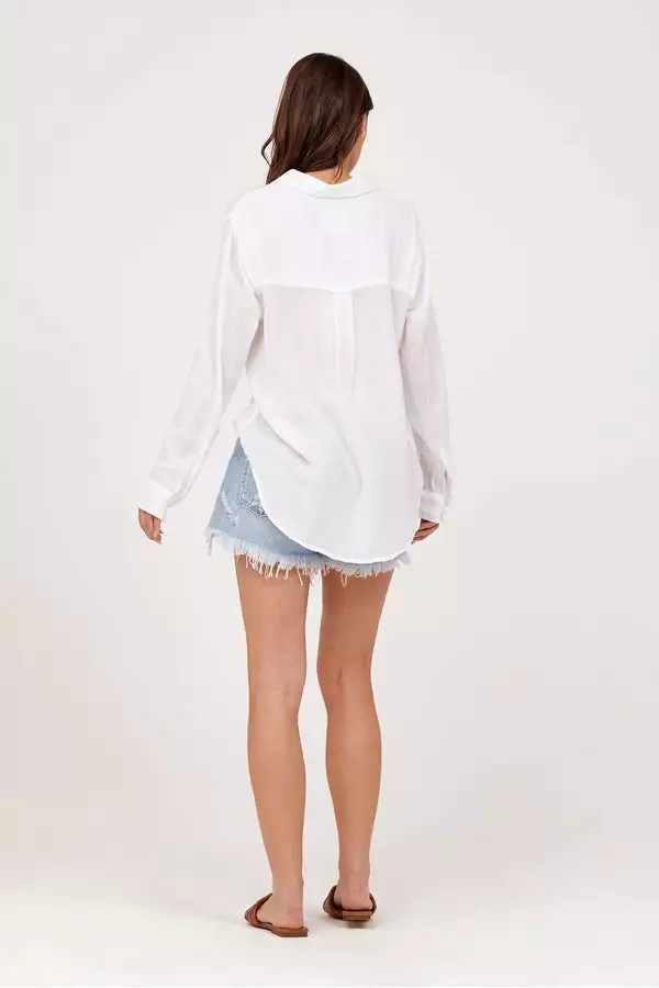Look polished from work to weekend in this super soft classic button-down shirt. Made from breezy cotton gauze, this button-down shirt features two patch pockets at chest, voluminous feminine sleeves, and natural shell buttons.