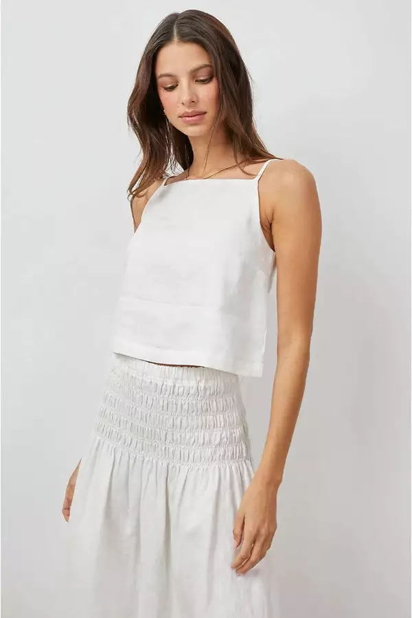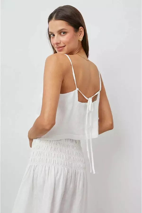 This effortless strappy back tank is ideal for warm summer days. This tank is made from heavy linen and features adjustable ties.