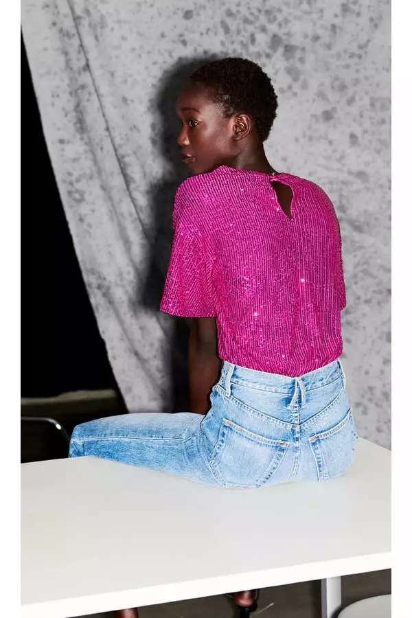Introducing, your favorite top, now embellished with pink sequins! The Tamika Top is the perfect top to add some pizzazz to any outfit. Covered in pink stretch sequins and complete with a keyhole opening at the back. Pair with a mini skirt or leather pants for a night out, or tuck into a pair of high waisted jeans for a more everyday look.