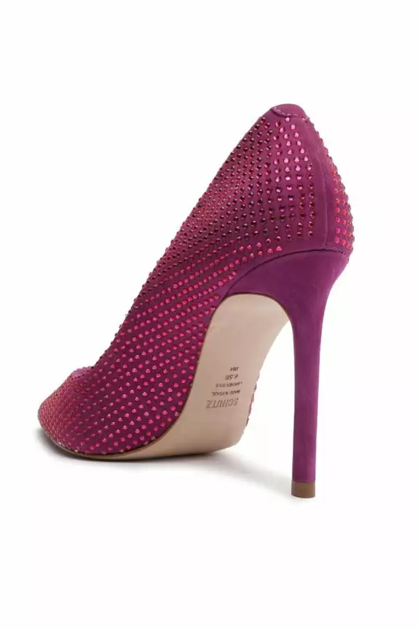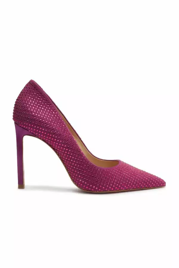 A pump designed in Nubuck, adorned with rhinestones, with a pointed toe and soaring stiletto heel. The Lou Pump is an elegant statement from day to night, season after season.