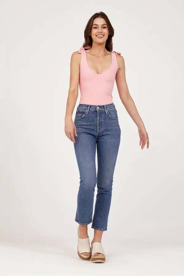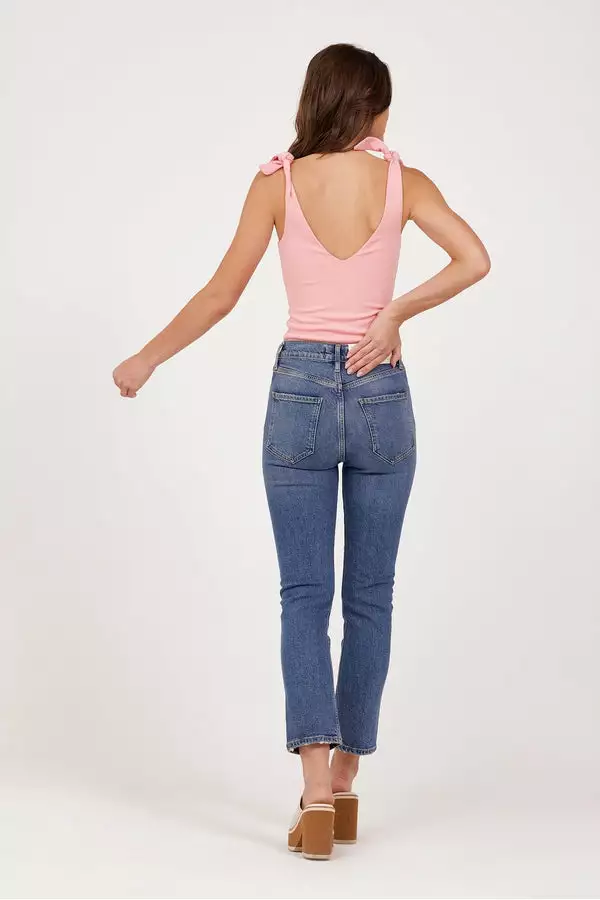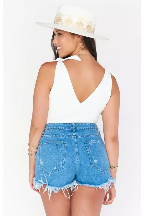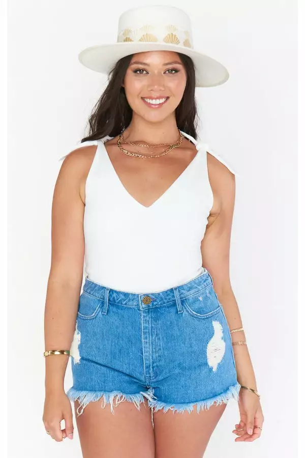 The bodysuit you’ll be wearing on repeat! Thick material makes this bra free friendly, and the close fitting design will have you looking tailored all day long. Pair with a skirt for an elevated look or your fave denim for a casual chic look. True ties at the shoulders let you customize your chest coverage.