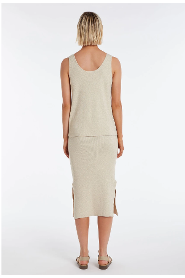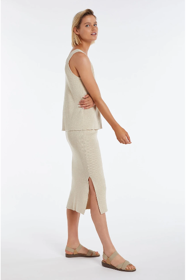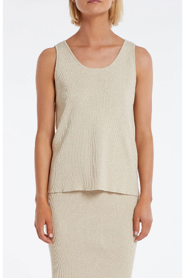 The Exposure Knit Tank in cotton metallic knit features a scoop neckline, A-line body, and has a clean, relaxed fit.